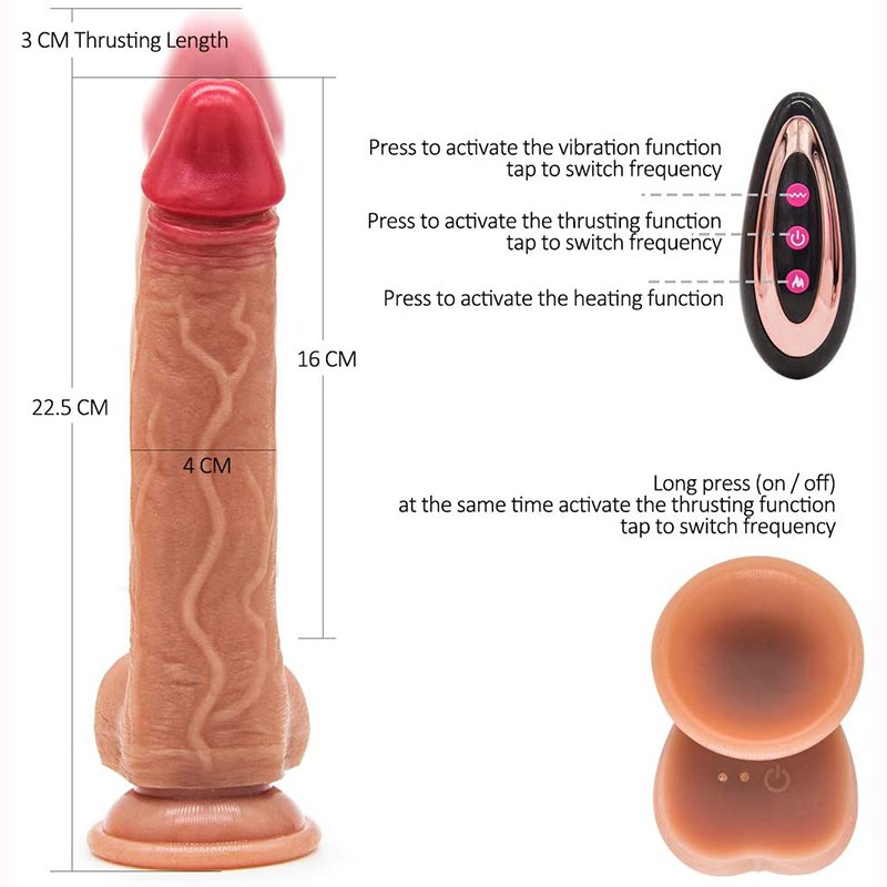 * Remote control telescopic vibrator dildo.* USB rechargeable.* 10 speeds.* Diameter(shaft):1.57"/4cm.* Total length:8.66"/22cm.* 480g.